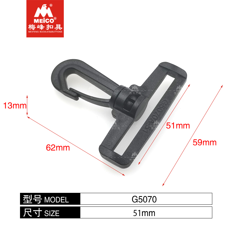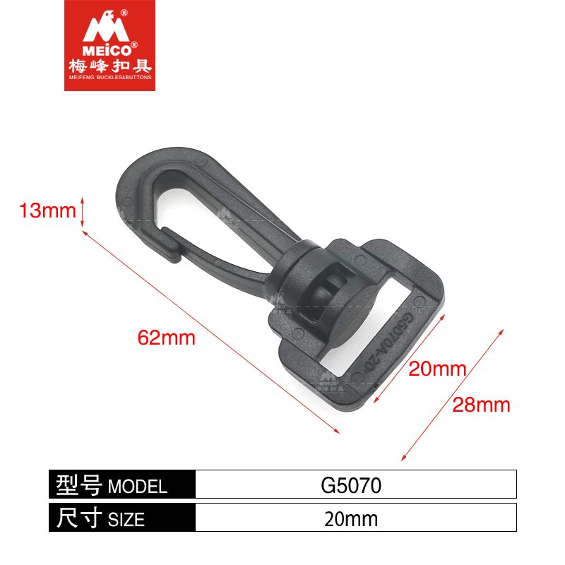 material:POM or customersied. Pom is widely use for the hook buckle.
